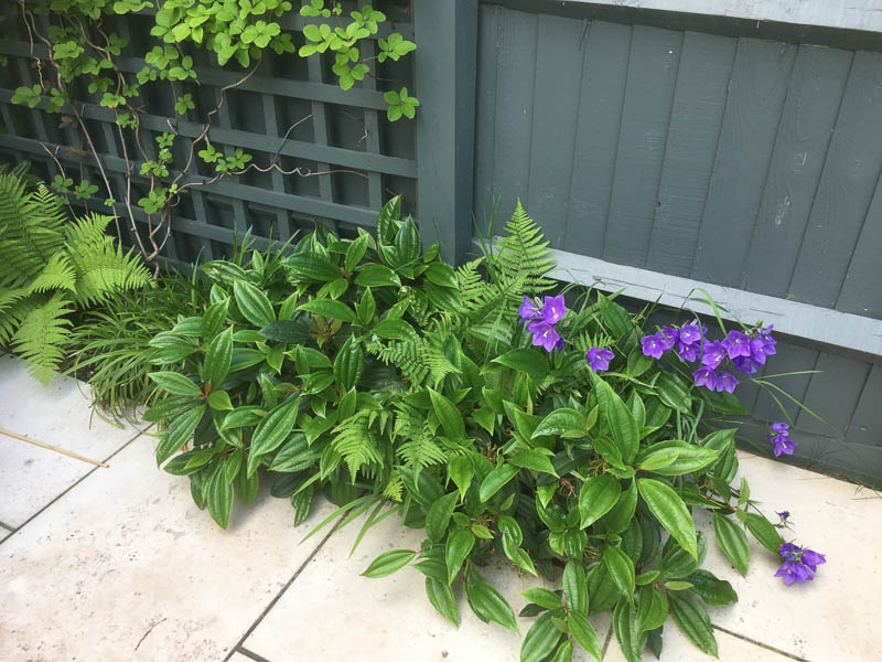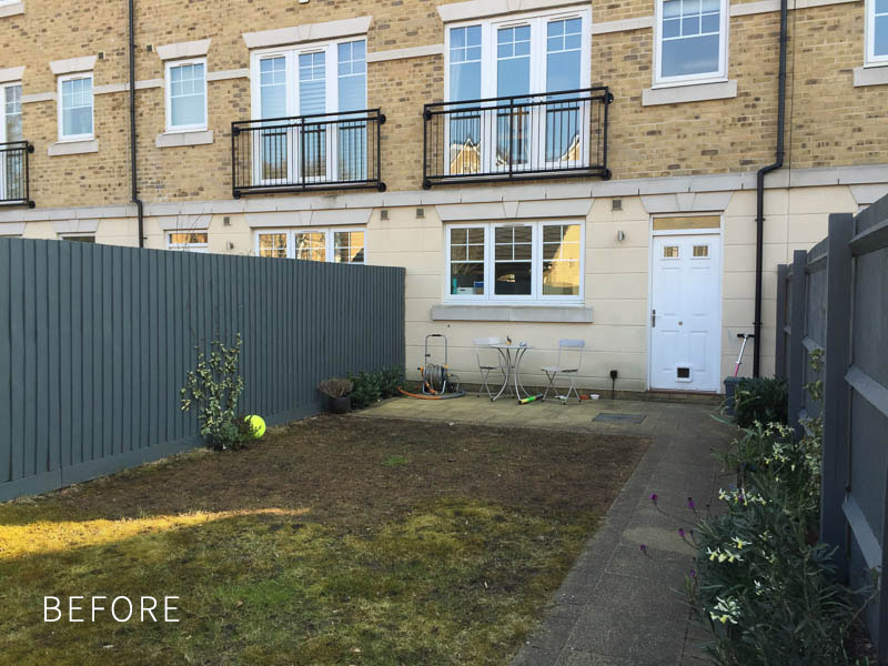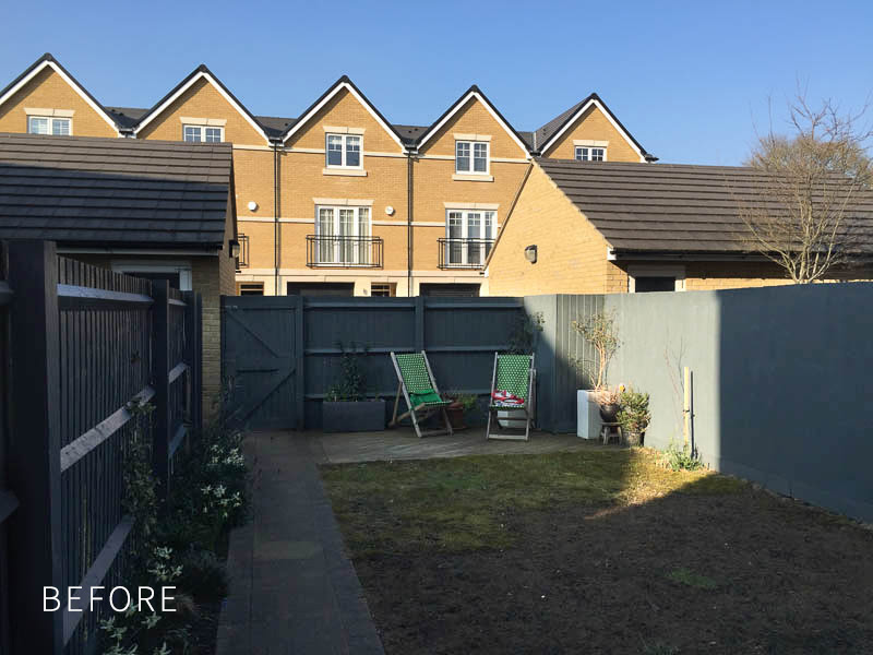 A north-facing space, over-shadowed by a four-storey townhouse and directly overlooked on all sides, shady and cold against the house but with areas of warm sunshine along the right-hand side and especially towards the rear.