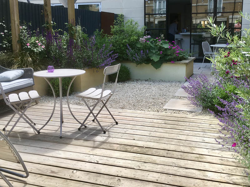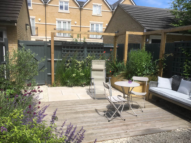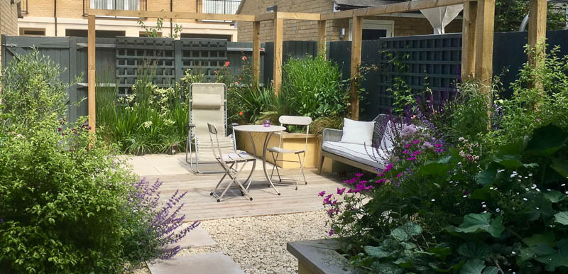 A formal yet relaxed space with an area for entertainment featuring permanent seating and a source of heat. The main impetus for the design was to reduce the sense of being overlooked by creating more structure and interest for the eye to alight upon within the garden itself.